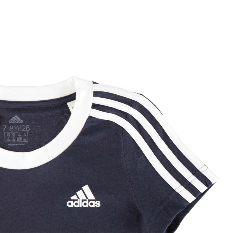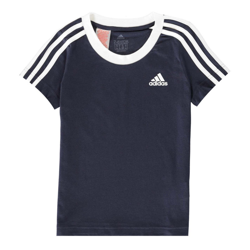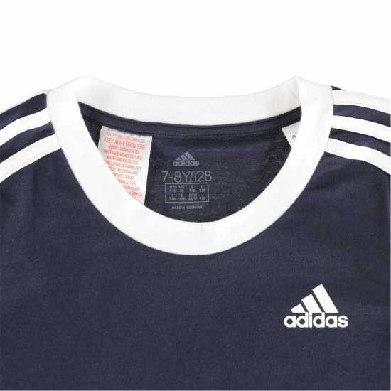 Adidas Essentials 3 Stripe T-Shirt Junior Girls Морско синьо/Бяло - Детски тениски и фланелки