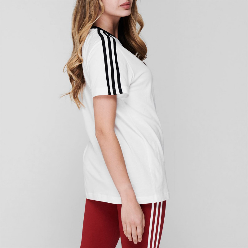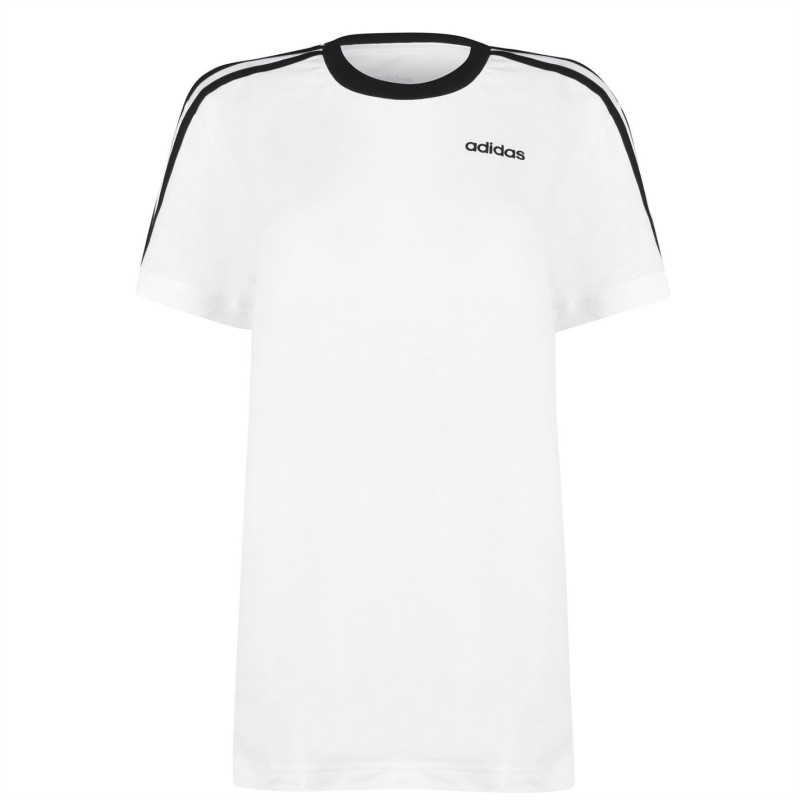 Adidas Essentials 3 Stripe T-Shirt Womens Бяло/Черно - Дамски тениски и фланелки