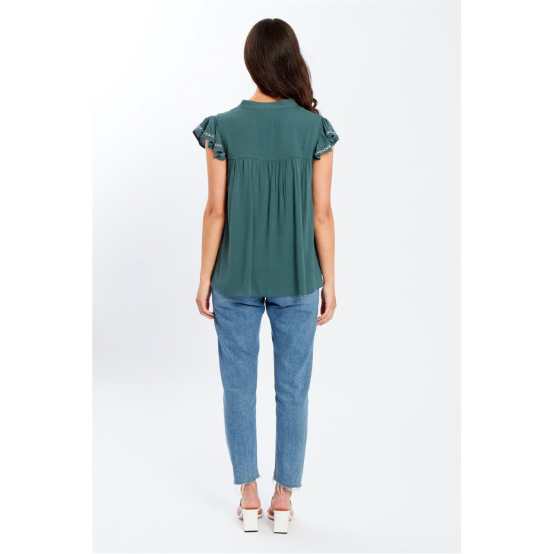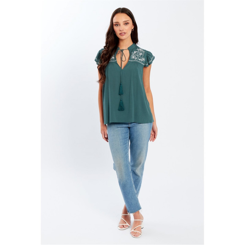 Be You Embroidered Crinkle Blouse Womens Зелено - Дамски ризи и тениски