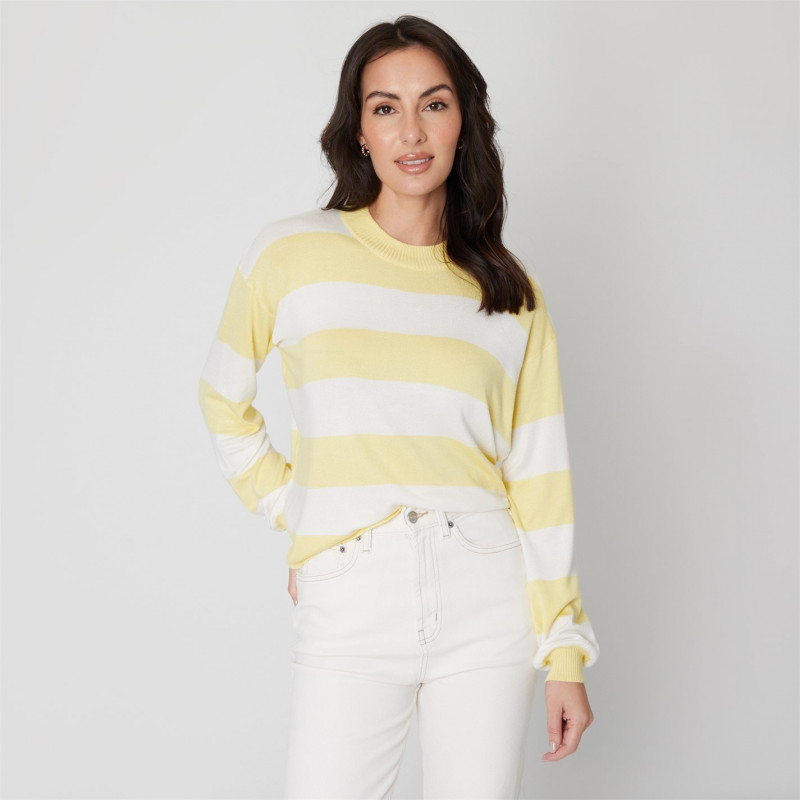 Блуза С Обло Деколте Be You Stripe Crew Neck Jumper Лимон -