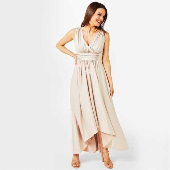 Biba Bridesmaid Dip Hem Maxi Dress Шампанско - Дамски поли и рокли