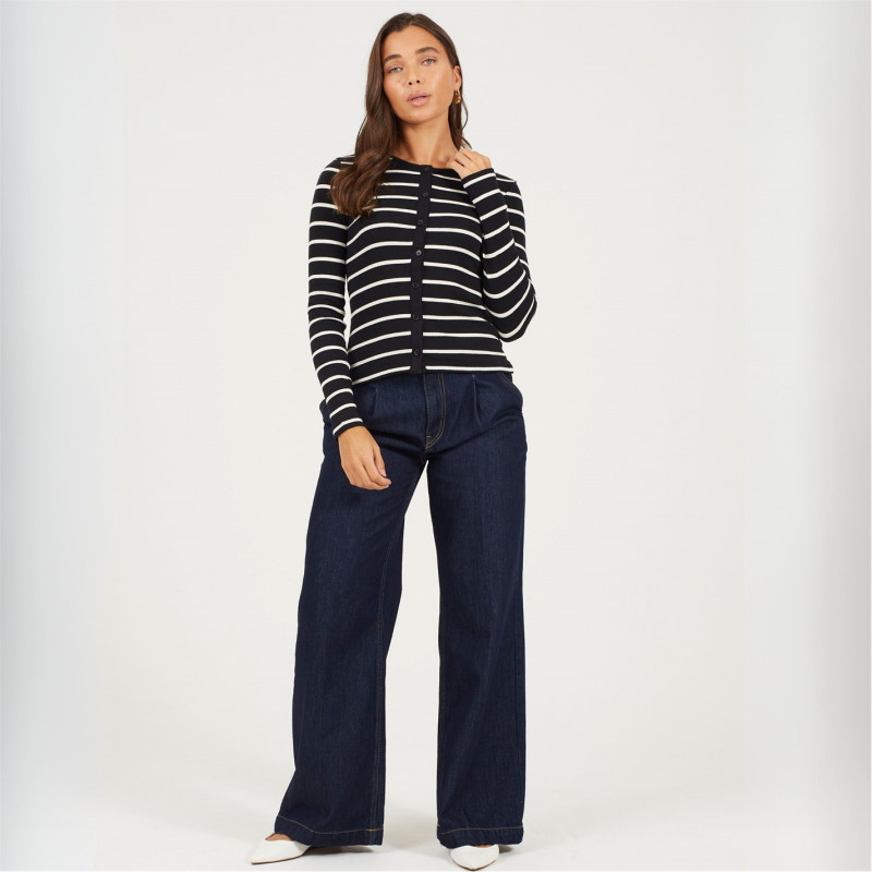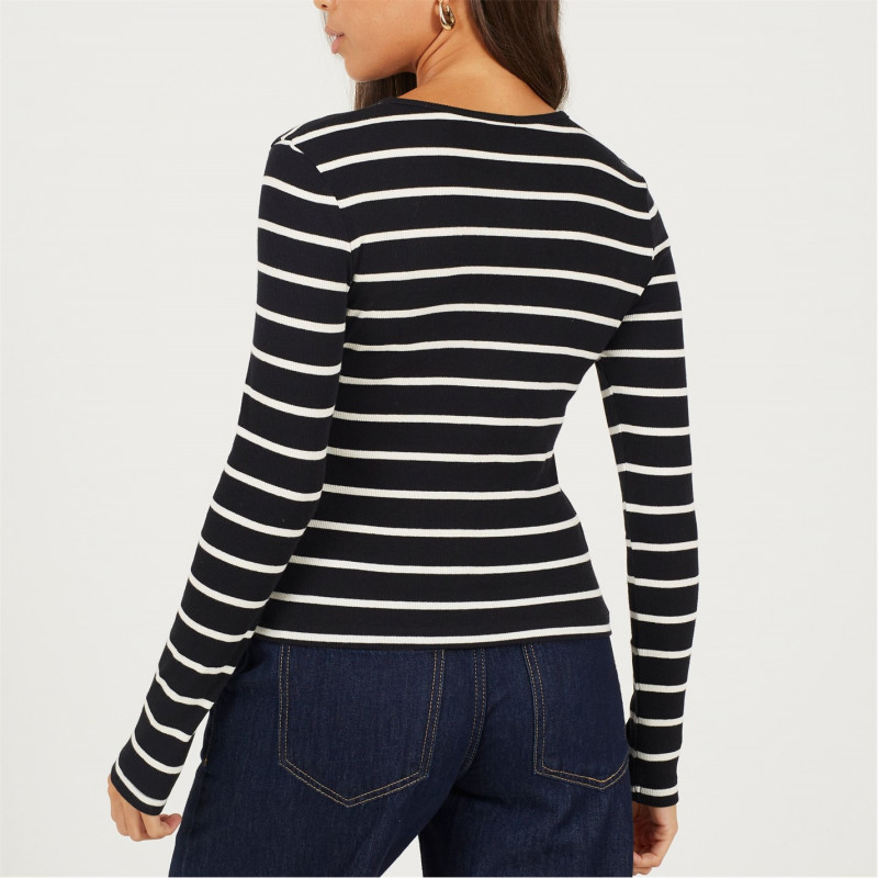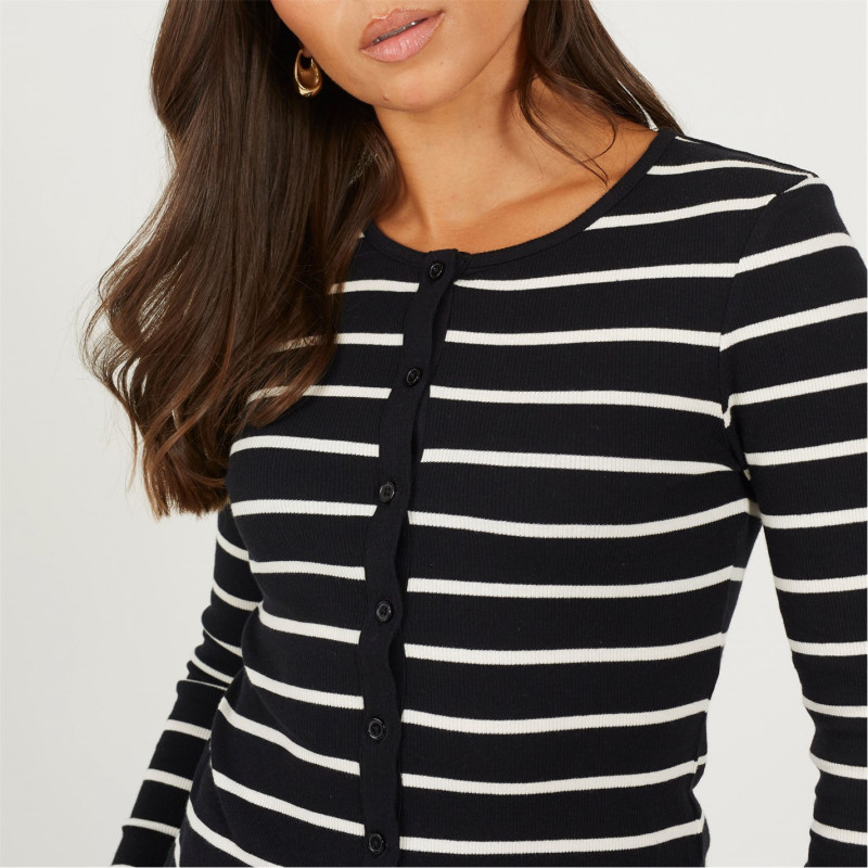 Brave Soul Bs Womens Long Sleeve Button Down Striped Jersey Top