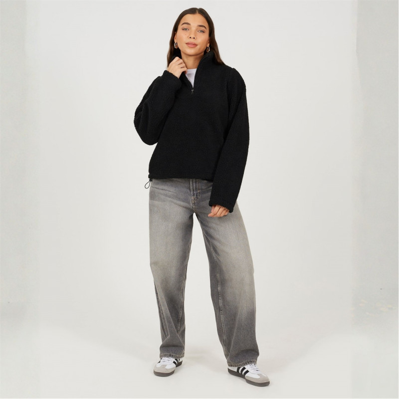 Brave Soul Bs Womens Quarter Zip Neck Fleece Sweatshirt With Adjustable Hem