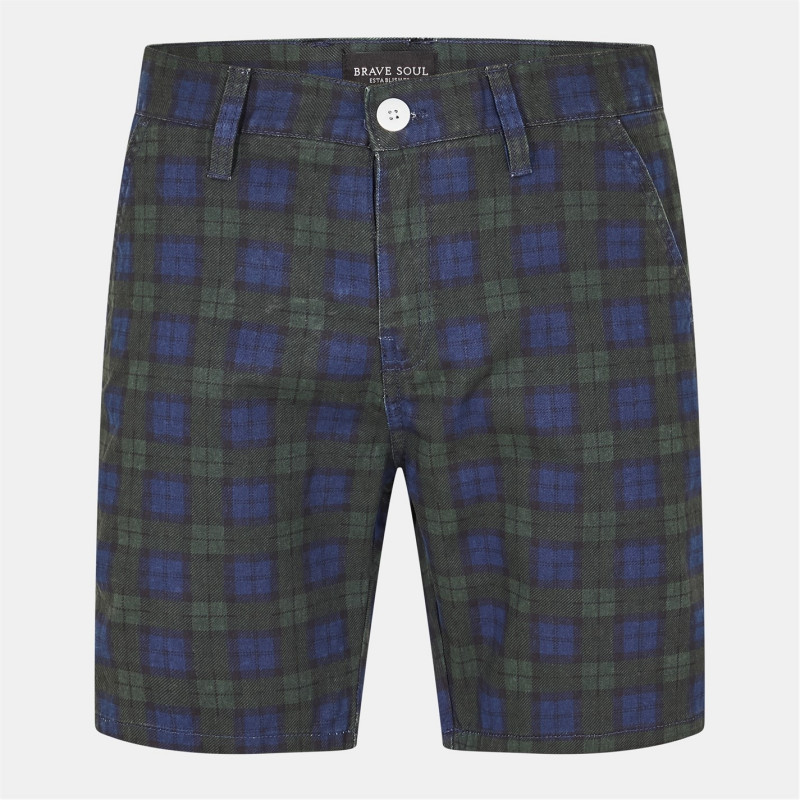 Brave Soul Check Print Cotton Twill Shorts