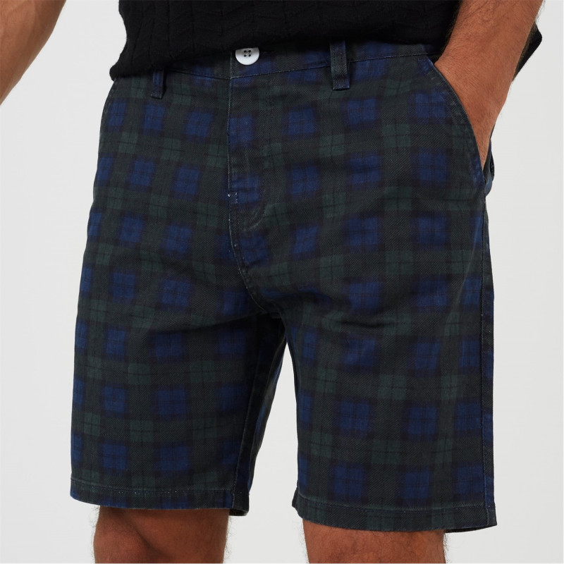 Brave Soul Check Print Cotton Twill Shorts -