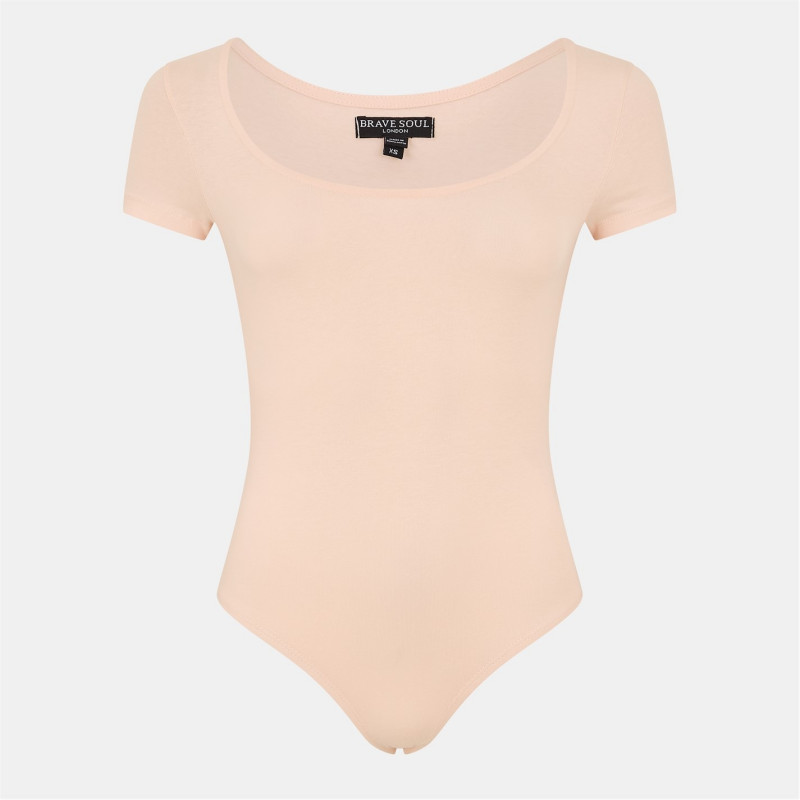 Brave Soul Square Neck T-Shirt Bodysuit Розово-прасковен -