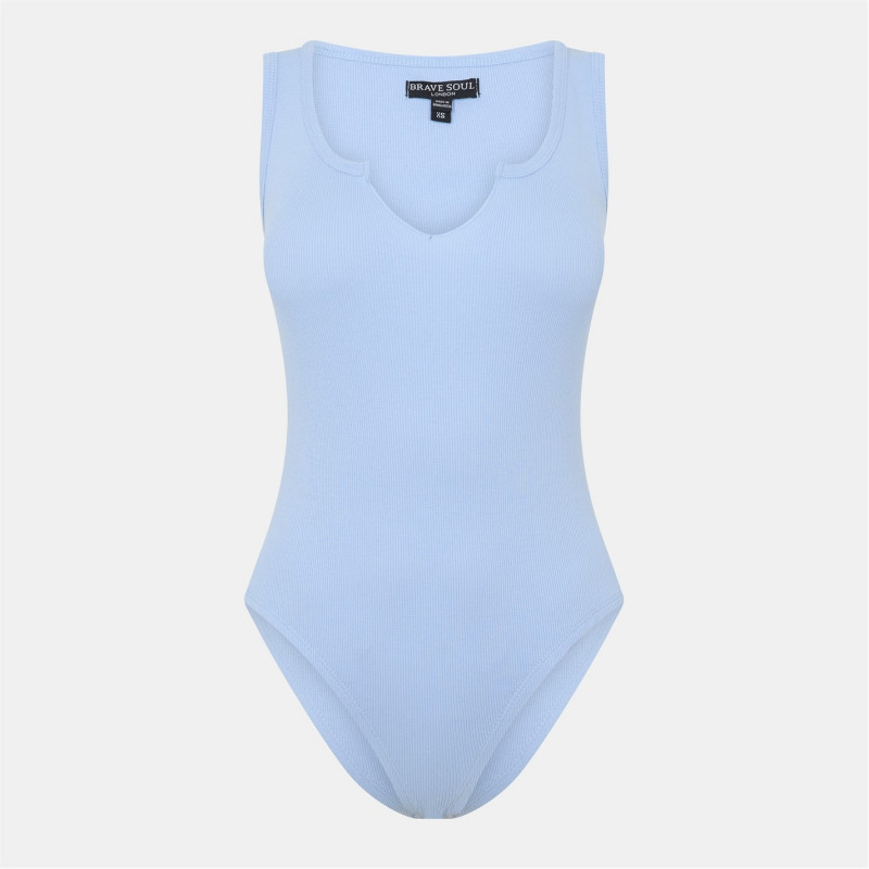 Brave Soul Vest Style Notch Neck Bodysuit Небесно синьо -