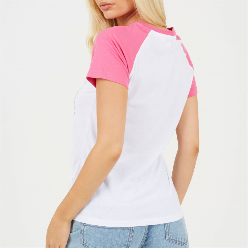 Brave Soul Womens Contrat Raglan Sleeve T-Shirt With Hawaii Graphic White/Coral -
