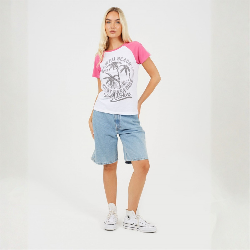 Brave Soul Womens Contrat Raglan Sleeve T-Shirt With Hawaii Graphic