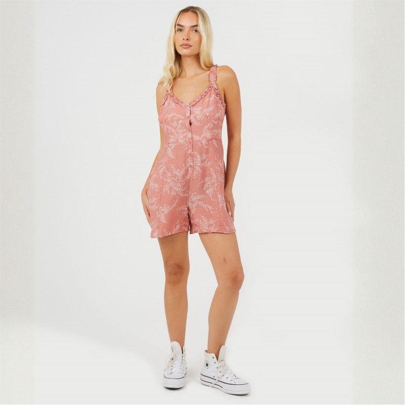 Brave Soul Womens Leaf Print Paysuit With Frilly Straps