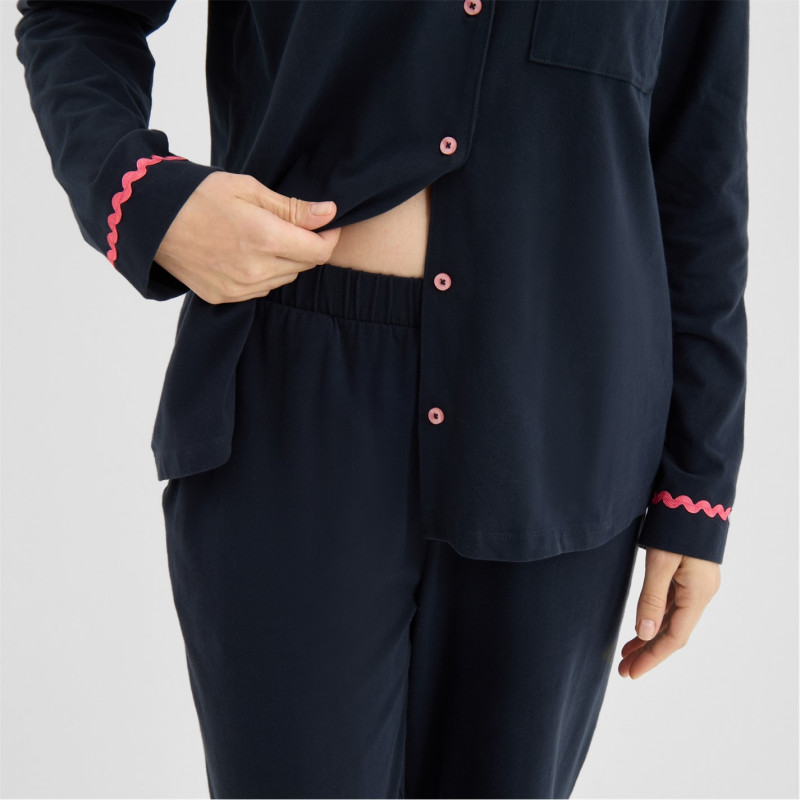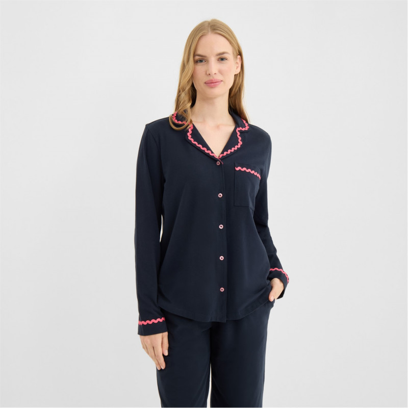 Chelsea Peers Chelsp Wavy Trim Pjs Ld62 G Morning Navy -