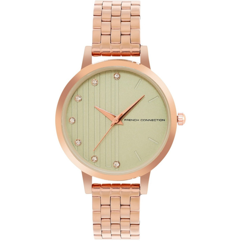 French Connection Rose Case Round Shape Rose Strap Quartz Watch