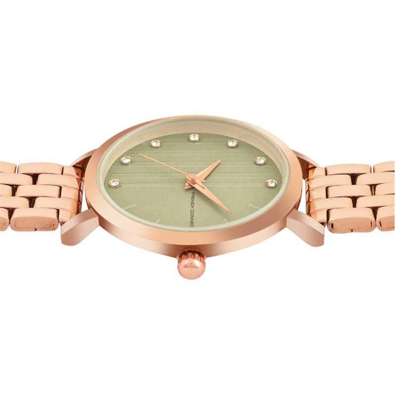 French Connection Rose Case Round Shape Rose Strap Quartz Watch -