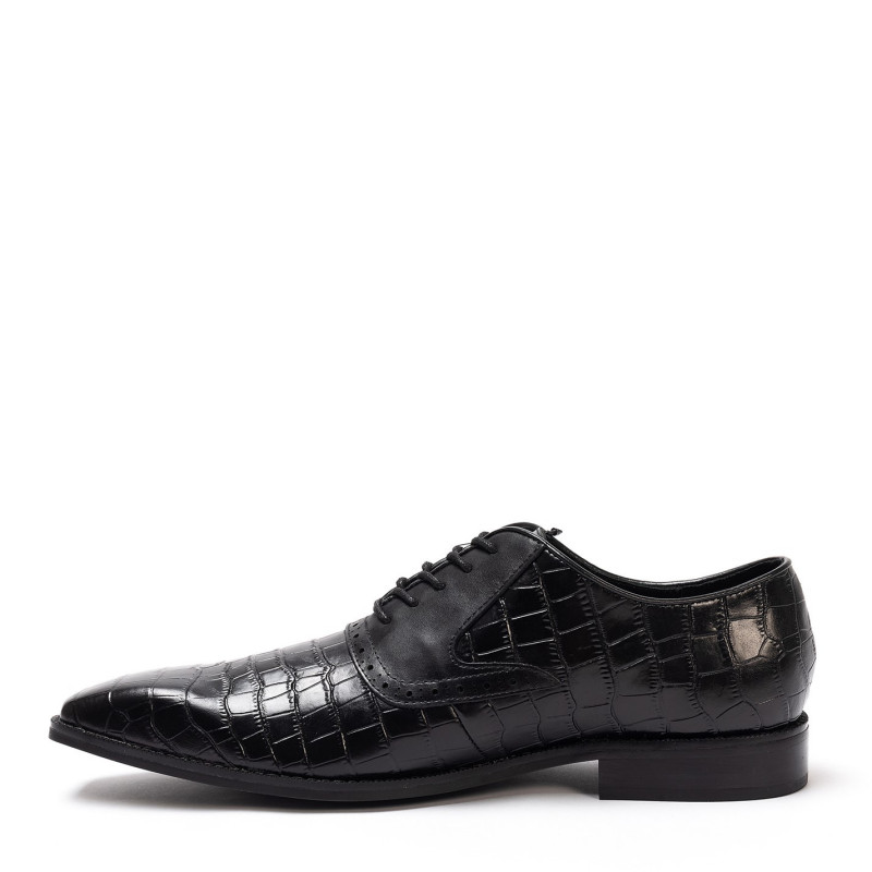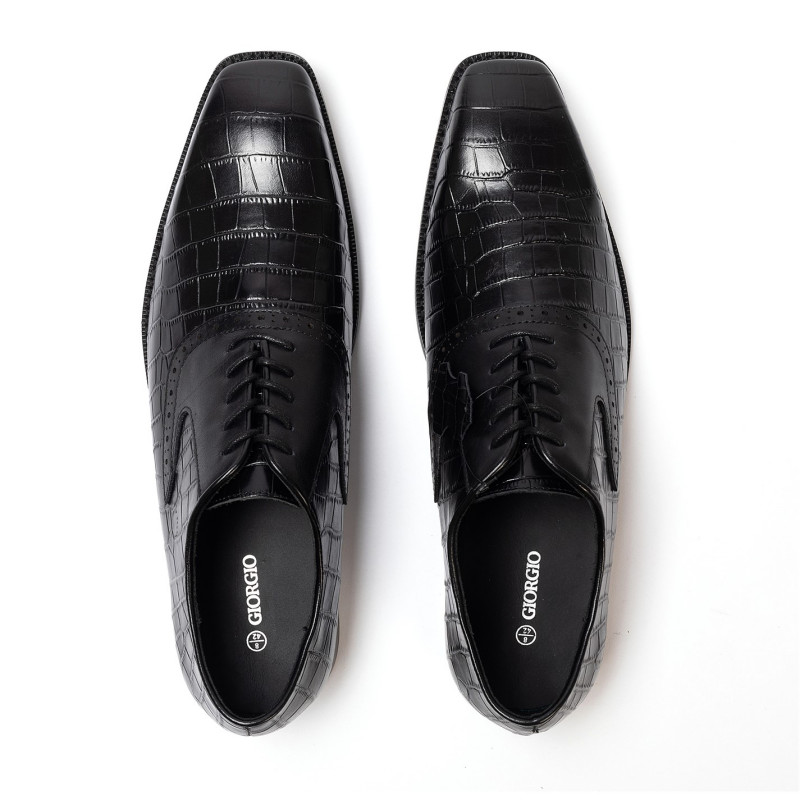 Giorgio Leather Croc Men Oxford Dress Brogue Shoes Черно - Мъжки обувки