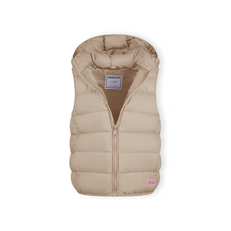 Girls Quilted Gilet Removable Hood Beige