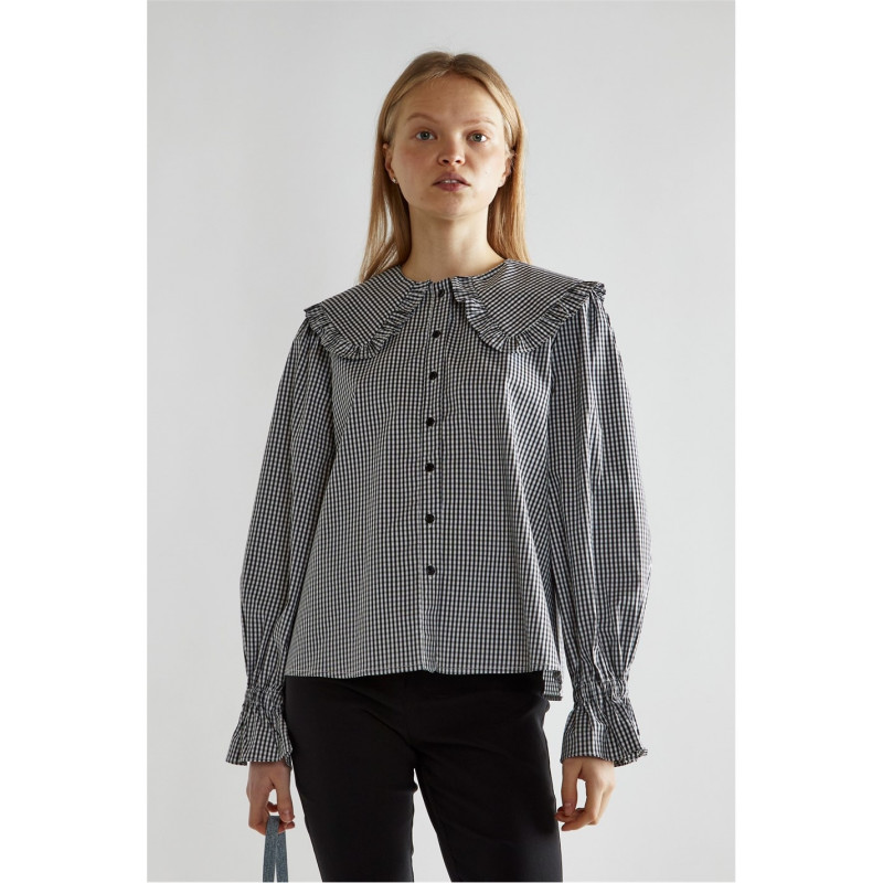 Glamorous Gingham Statement-Collar Blouse - Дамски тениски и фланелки