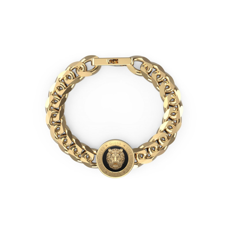 Guess 21Mm Lion Coin & Black Bracelet Gold -