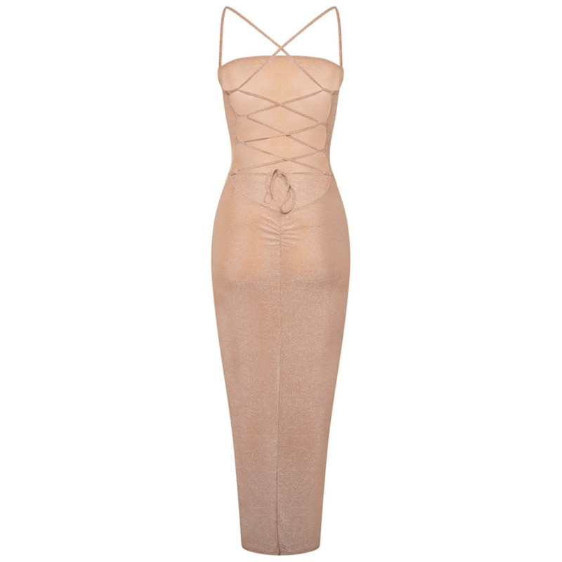 Honeyz Women's Backless Maxi Dress Бежово -