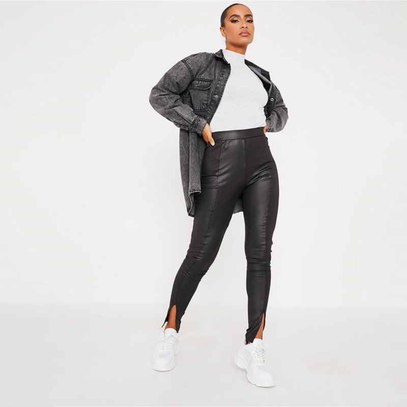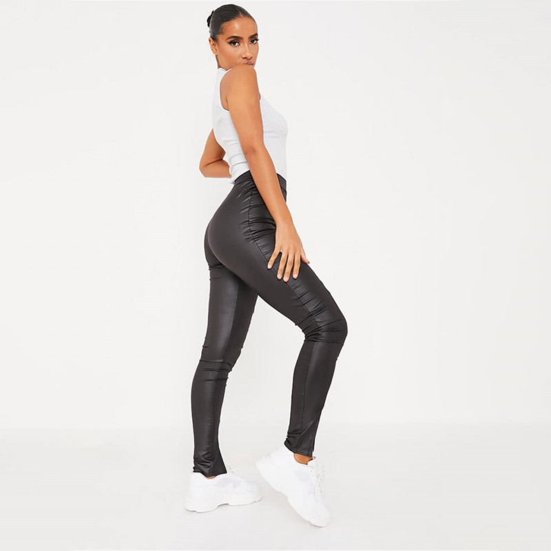 I Saw It First Isawitfirst Wet Look Front Split Pin Tuck Leggings