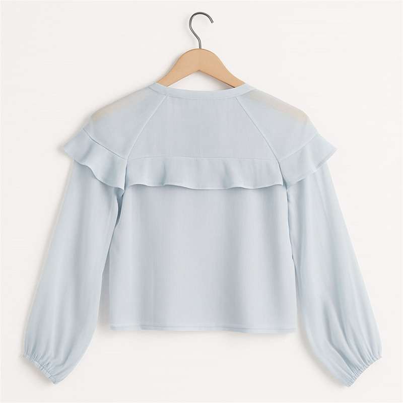 I Saw It First Long Sleeve Ruffle Blouse Blue -