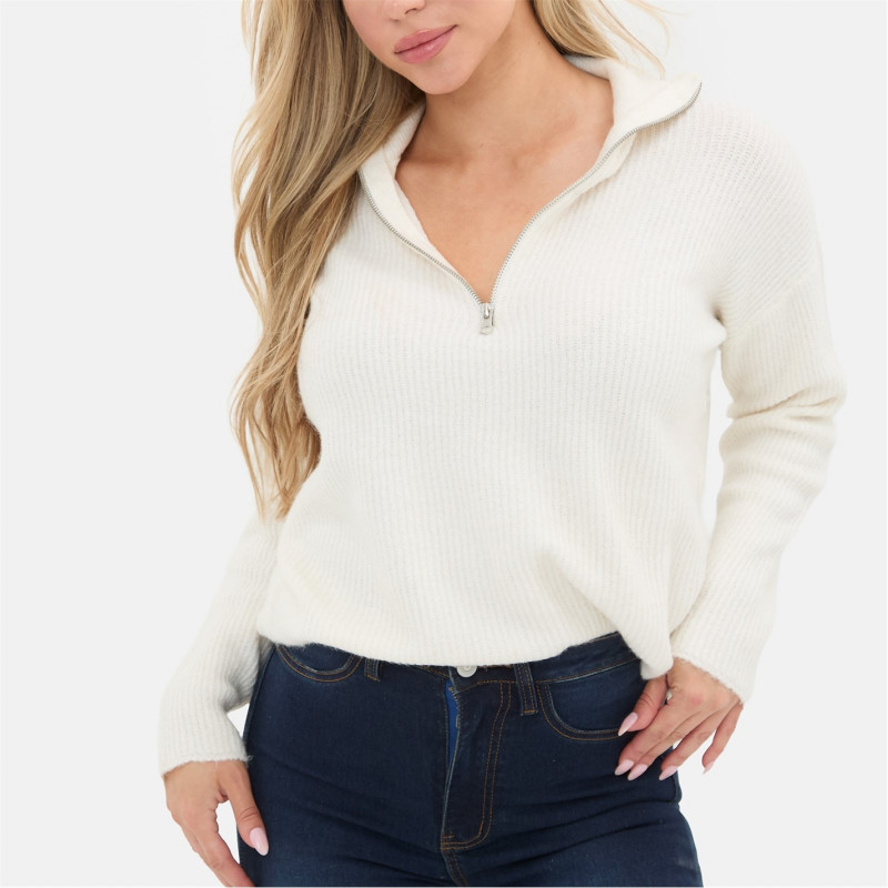 I Saw It First Zip Neck Jumper Cream -