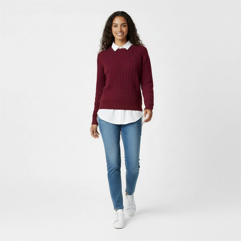 Jack Wills Jack Tinsbury Merino Wool Blend Cable Knitted Jumper Women Бордово -