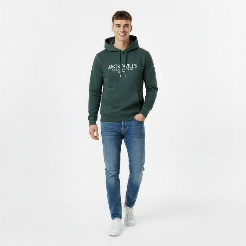 Jack Wills Batsford Logo Hoodie Mens Dark Pine - Мъжки суитчъри и блузи с качулки