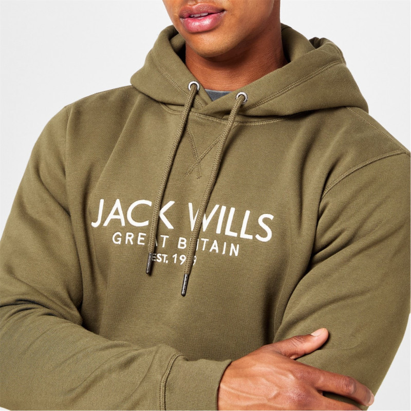 Jack Wills Batsford Logo Hoodie Mens Лист - Мъжки суитчъри и блузи с качулки