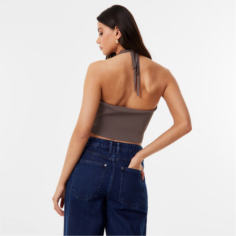 Jack Wills Cut Out Knit Top Кафяво - Дамски пуловери и жилетки