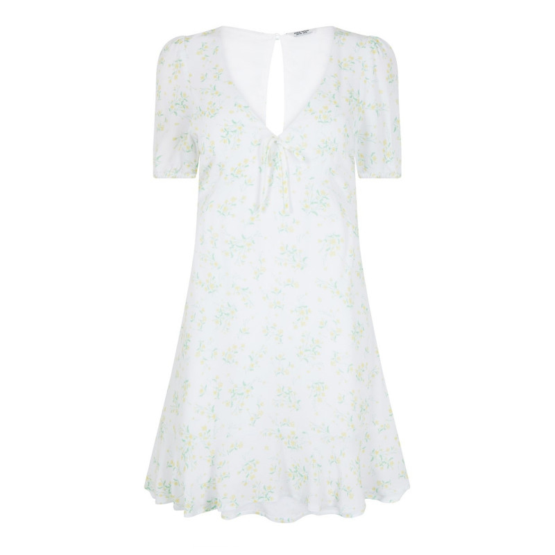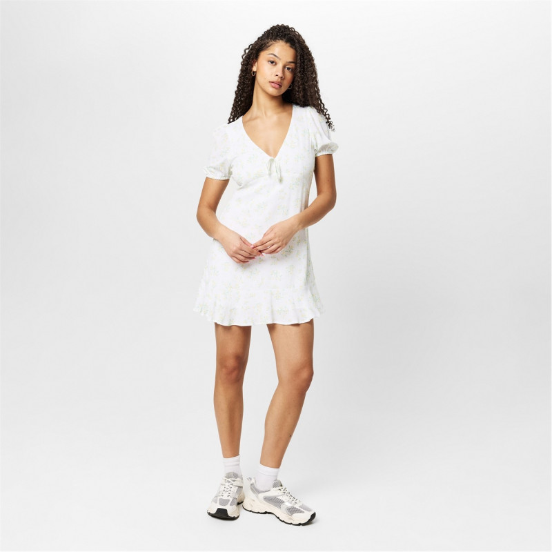 Jack Wills Cut Out Mini Dress Бяло/Жълто Дит - Дамски поли и рокли