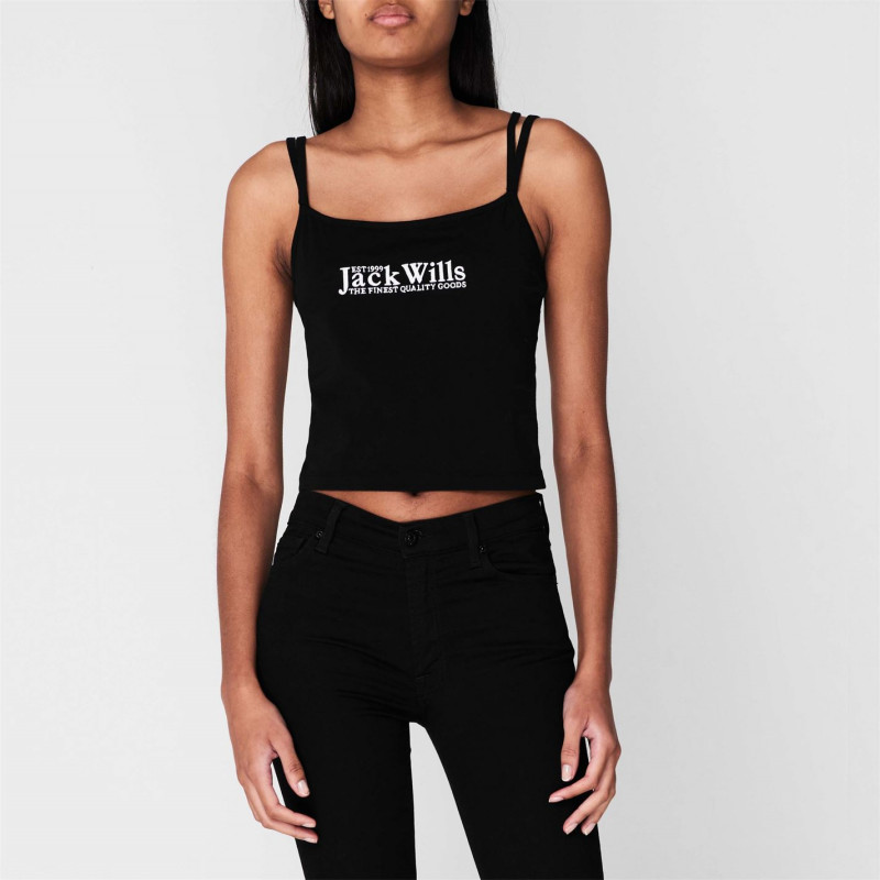 Jack Wills Double Strap Vest Черно - Дамски тениски и фланелки