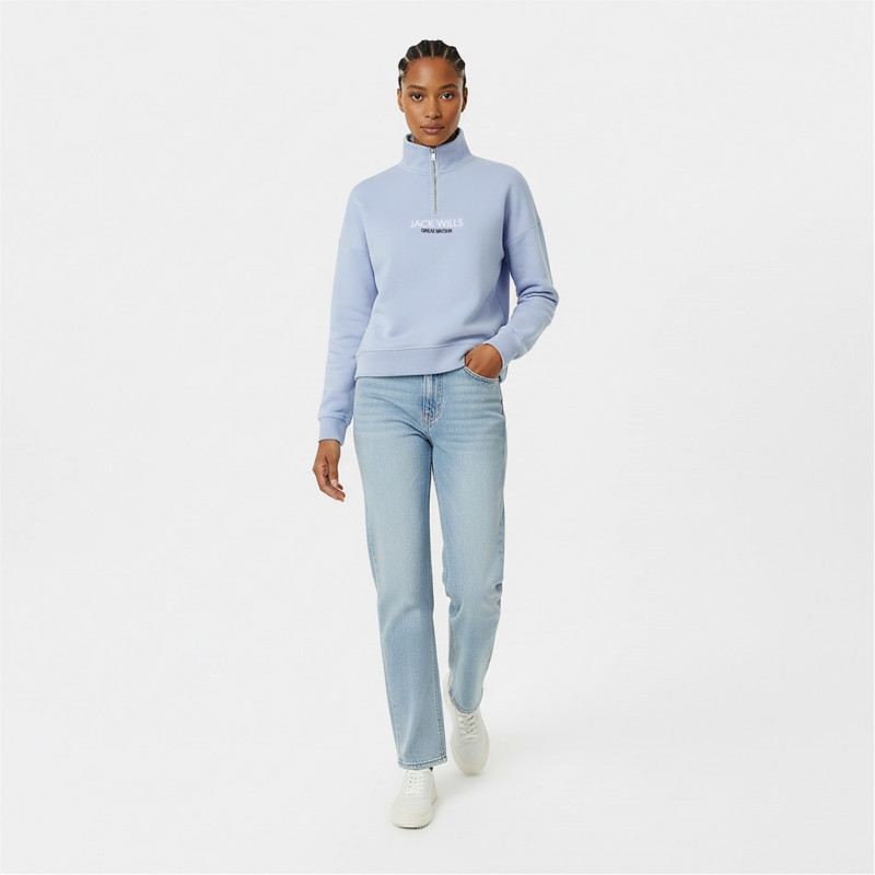 Jack Wills Honeylane Half Zip Sweatshirt Womens Меко синьо -