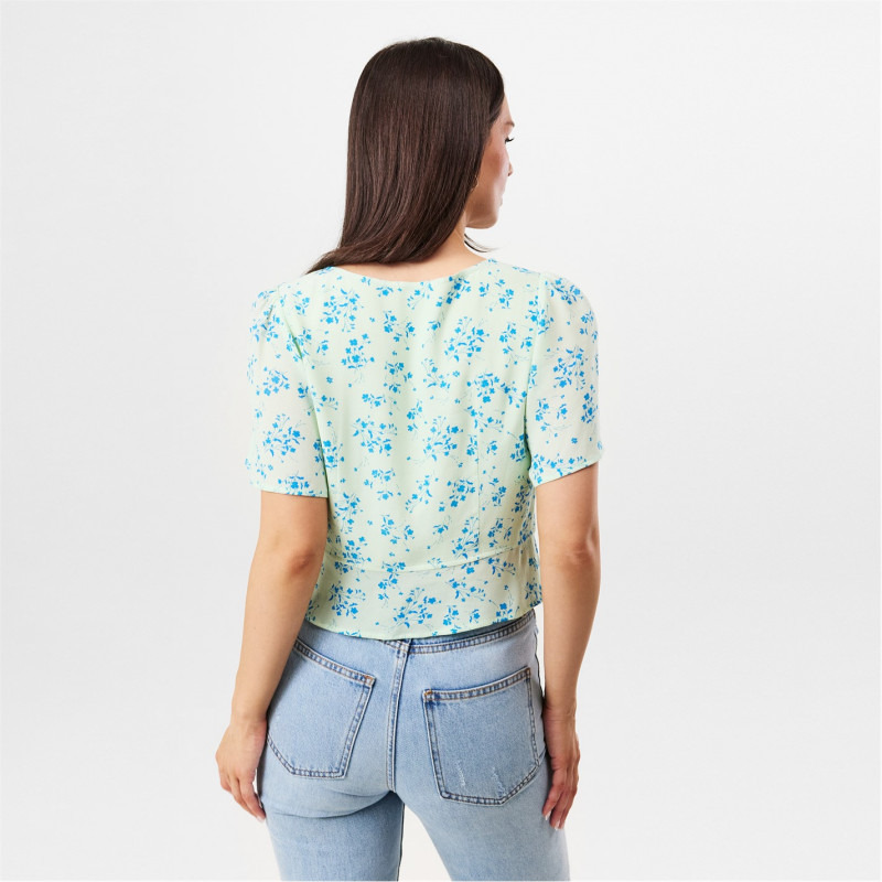 Jack Wills Jw Keyhole Short-Sleeve Blouse Морско стъкло Дитси -
