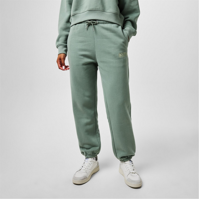 Jack Wills Loose Embellished Logo Closed Hem Fleece Joggers Ледено зелено -