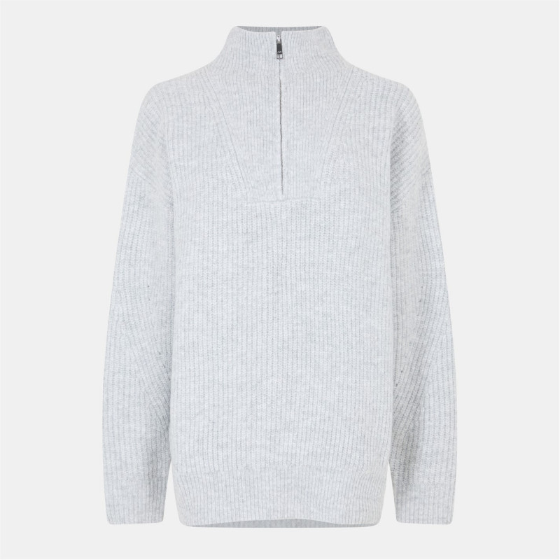 Jack Wills Lounge High Neck Zip Knitted Jumper Сив марл -