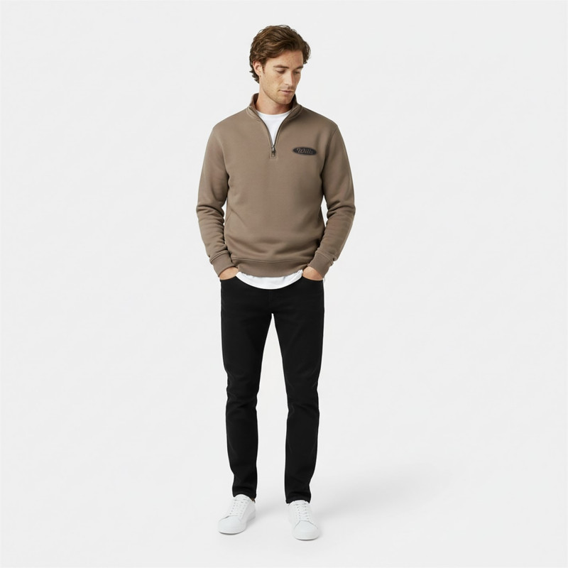 Jack Wills Men's Americano Cotton Long Sleeve Oversized Fit 1/4 Zip Fleece Бледо кафяво -