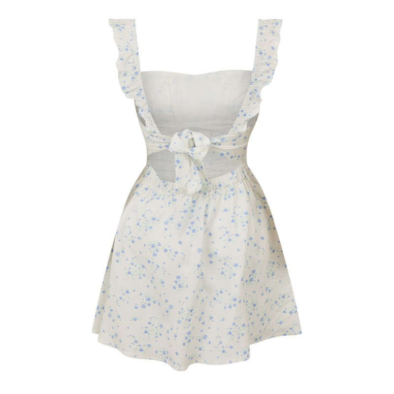 Jack Wills Patterned Tie Back Dress Бяло/Сини Дитс - Дамски поли и рокли