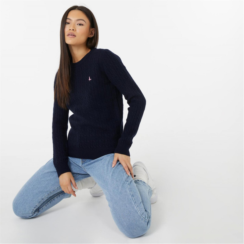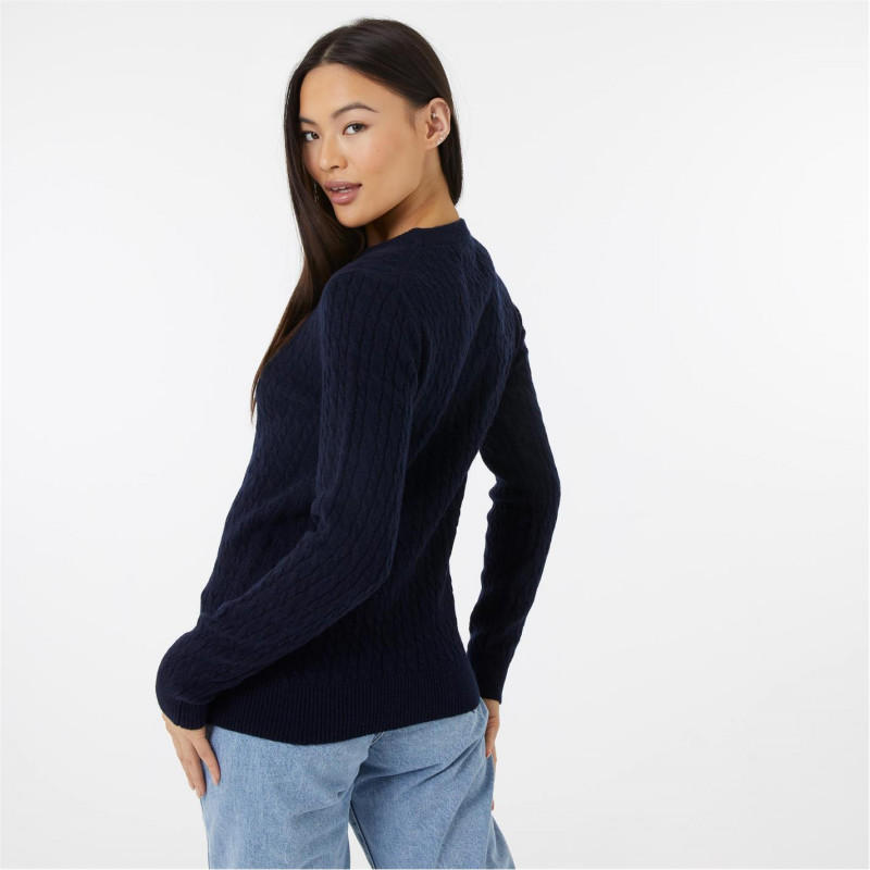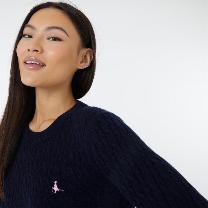 Jack Wills Tinsbury Merino Wool Blend Cable Knitted Jumper Women Морска синьо - Дамски пуловери и жилетки