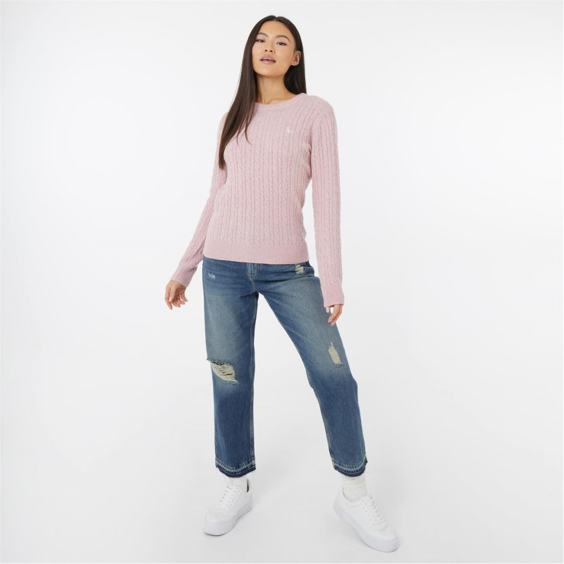 Jack Wills Tinsbury Merino Wool Blend Cable Knitted Jumper Women Розово - Дамски пуловери и жилетки