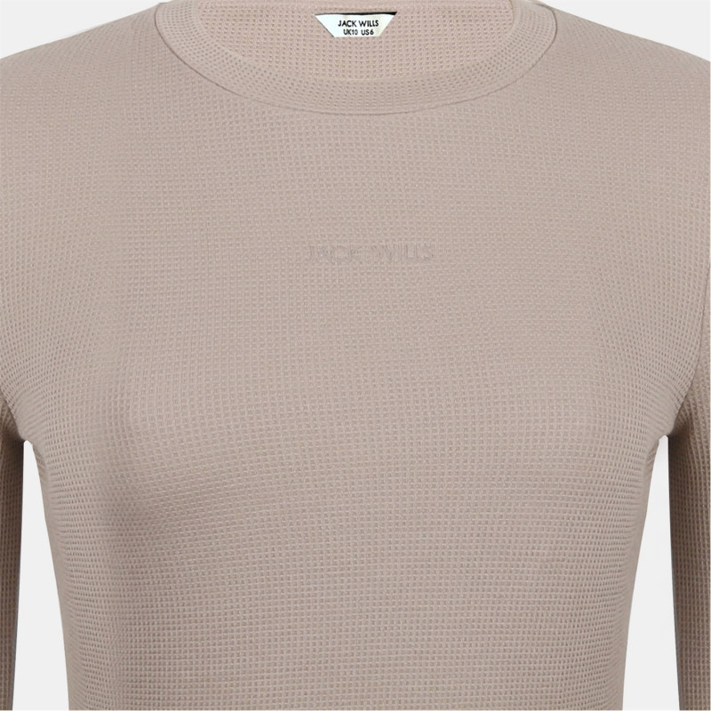 Jack Wills Waffle Lsbaby Tee Ld54 Taupe -