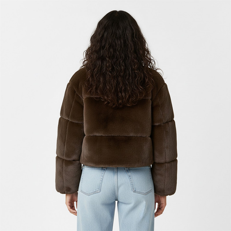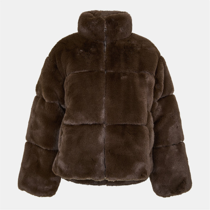 Jack Wills Women's JW Fur Long Sleeve Short Puffer Jacket Шоколад -