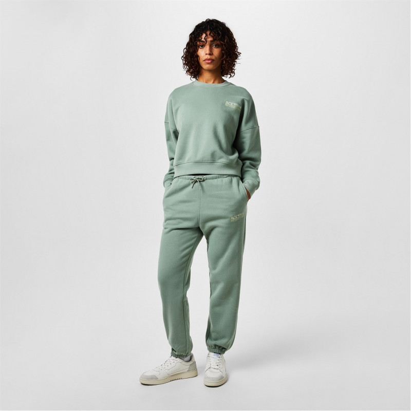 Jack Wills Women's Loose Embellished Logo Closed Hem Fleece Joggers Ледено зелено -