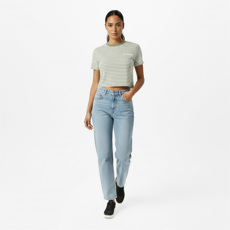 Jack Wills Women's Striped Crop Top Бяло/Зелено -