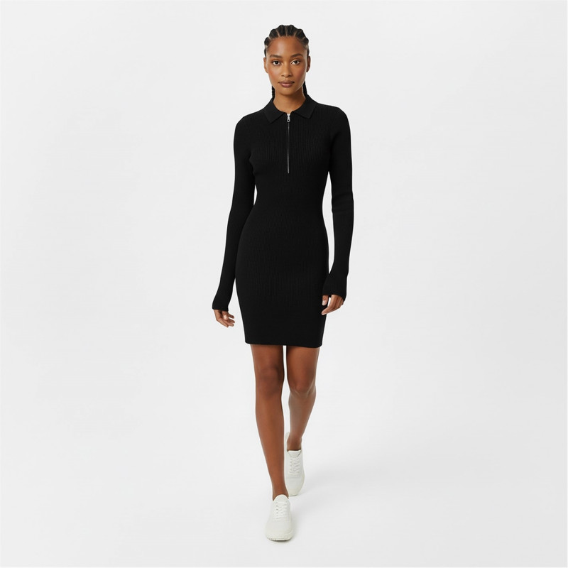 Jack Wills Women's Zipped Mini Knitted Jumper Dress Черно -