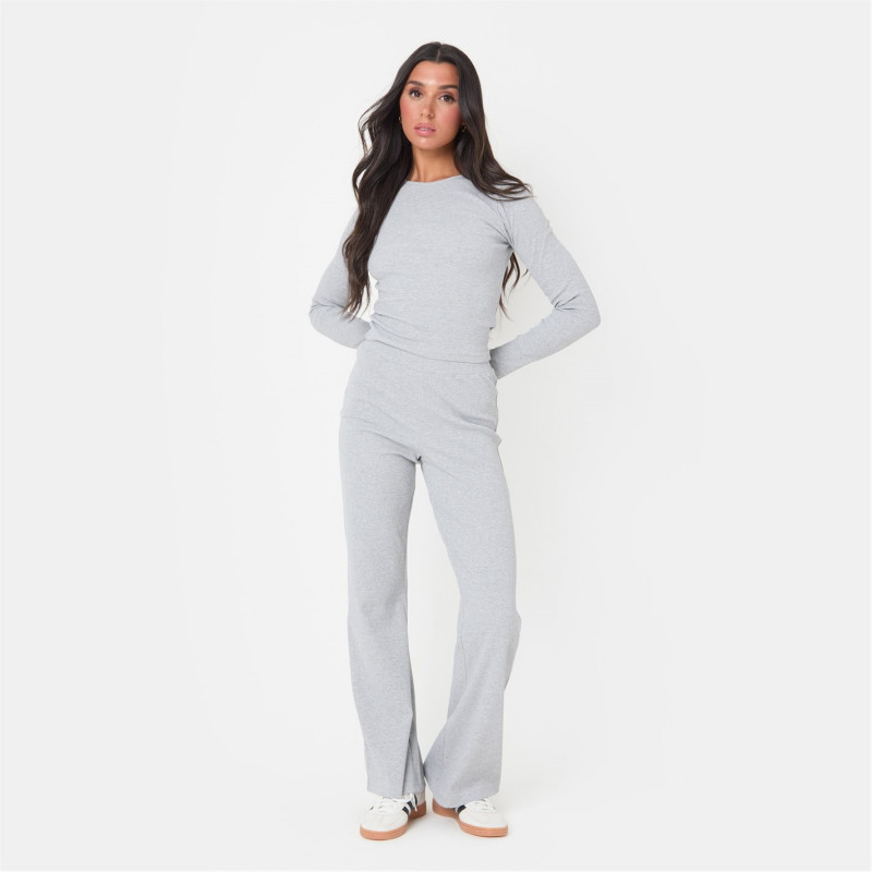Jersey Rib Wide Leg Trousers