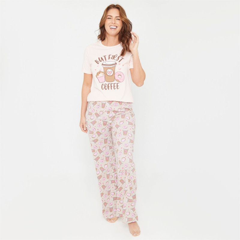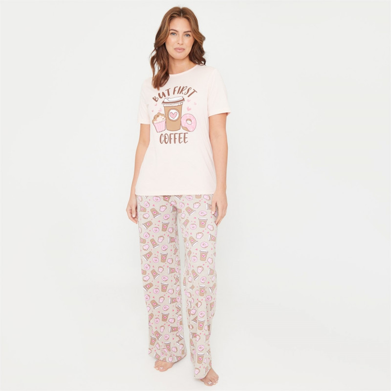 Linea Coffee Wide Leg Cotton Pyjama Set