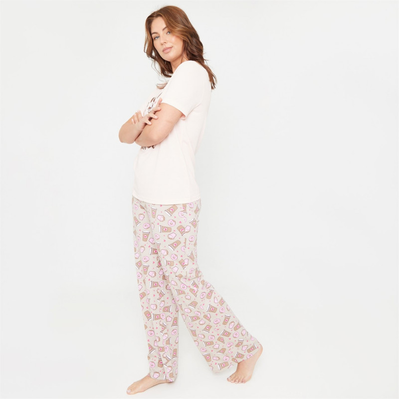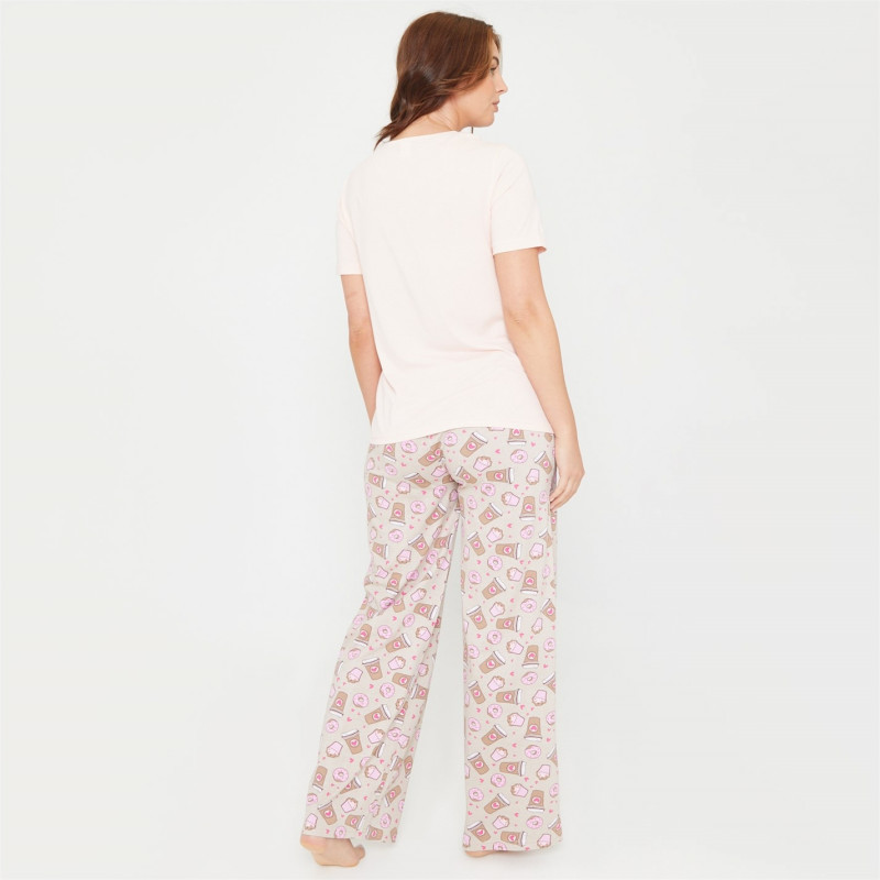 Linea Coffee Wide Leg Cotton Pyjama Set -