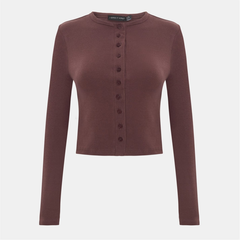Long Sleeve Rib Button Top