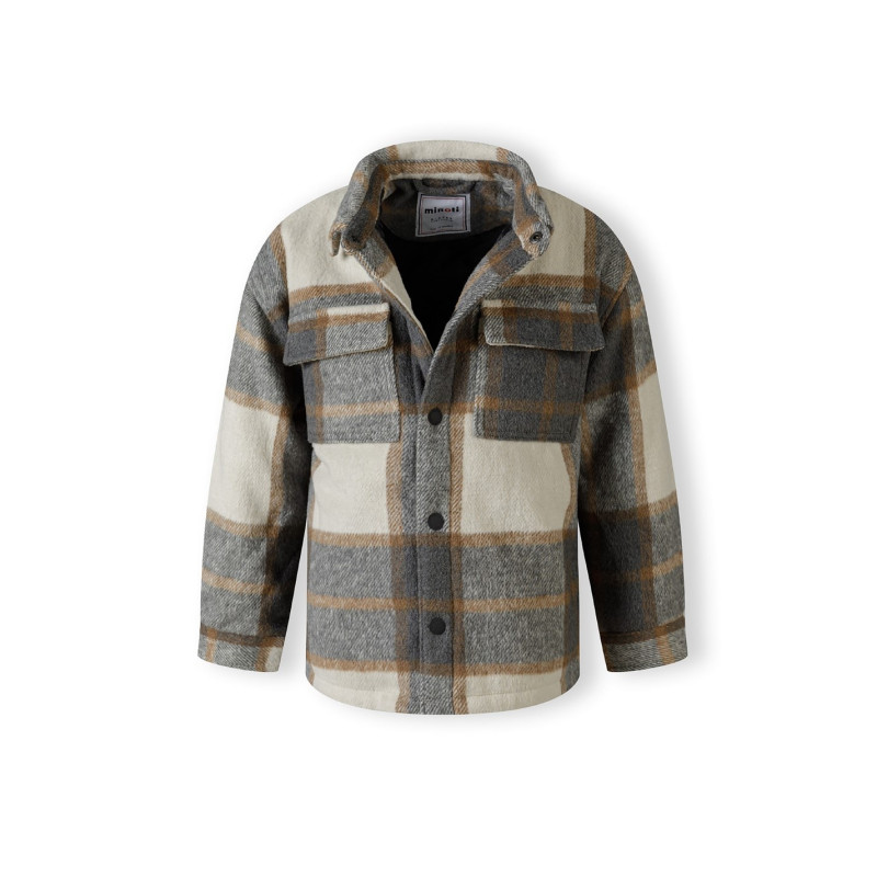 Minoti Boys Padded Shirt Jacket Wool Blend Grey Check -