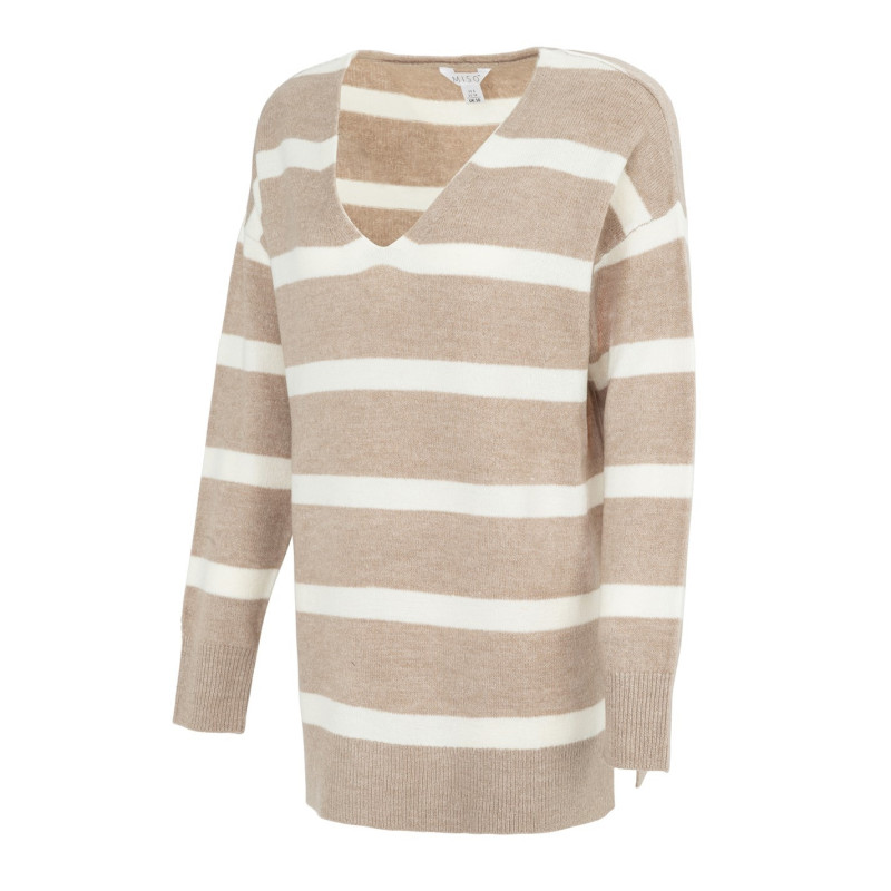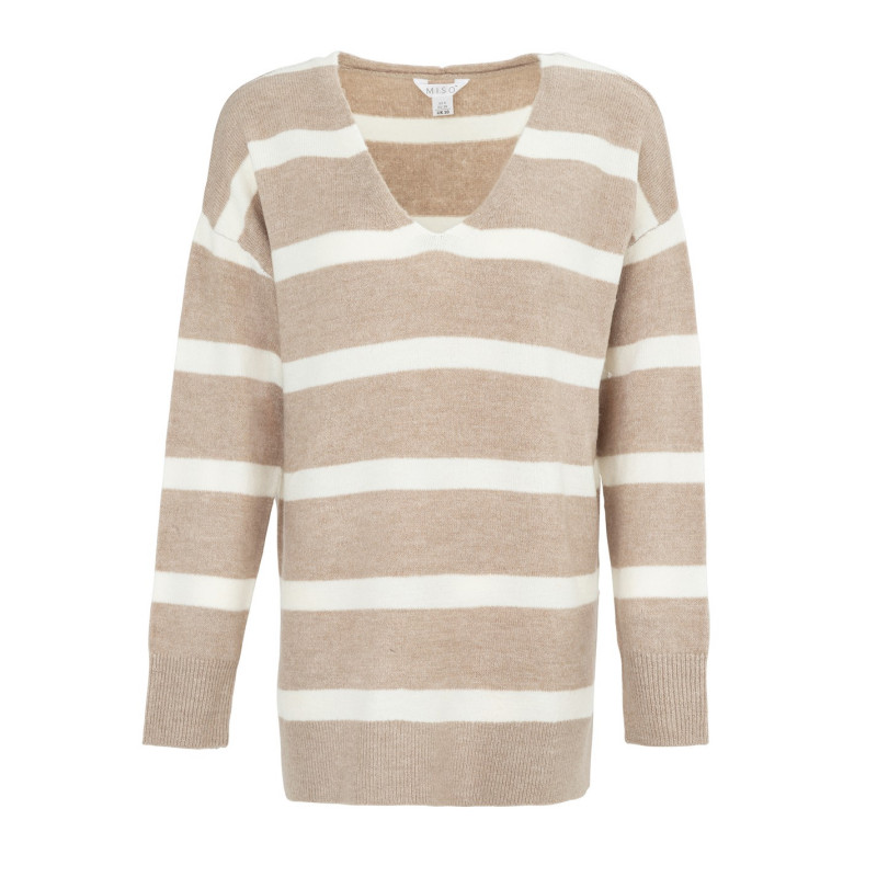 Miso V Neck Loose Stripe Sweater Dress Women Кафяво -